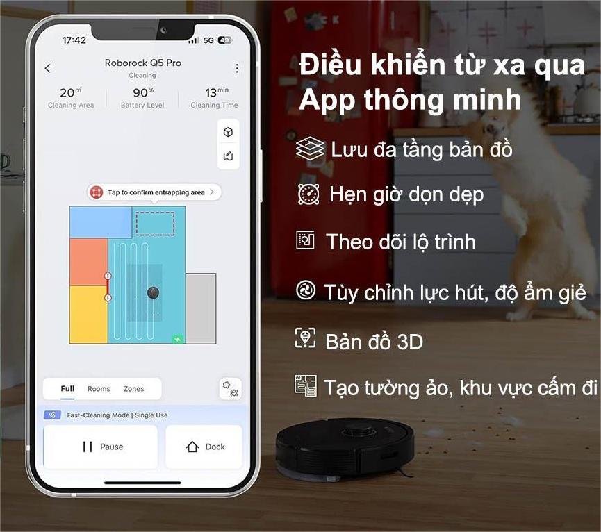 Nhờ đó, Robot hút bụi Roborock Q5 Pro - Bản quốc tế không chỉ làm sạch nhanh hơn mà còn tiết kiệm pin và thời gian hiệu quả.