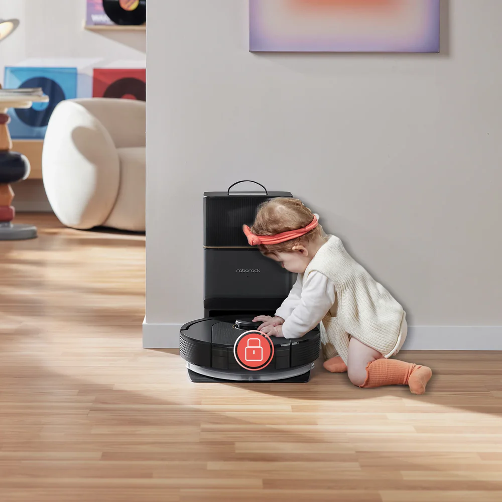 Robot hút bụi Roborock Q5 Pro Plus – Bản quốc tế được tích hợp tính năng Khóa trẻ em thông minh, giúp bạn hoàn toàn yên tâm khi nhà có trẻ nhỏ hoặc thú cưng hiếu động. Khi kích hoạt chế độ này, tất cả các nút điều khiển trên robot sẽ bị vô hiệu hóa, ngăn chặn việc robot bị khởi động hoặc thay đổi cài đặt ngoài ý muốn.