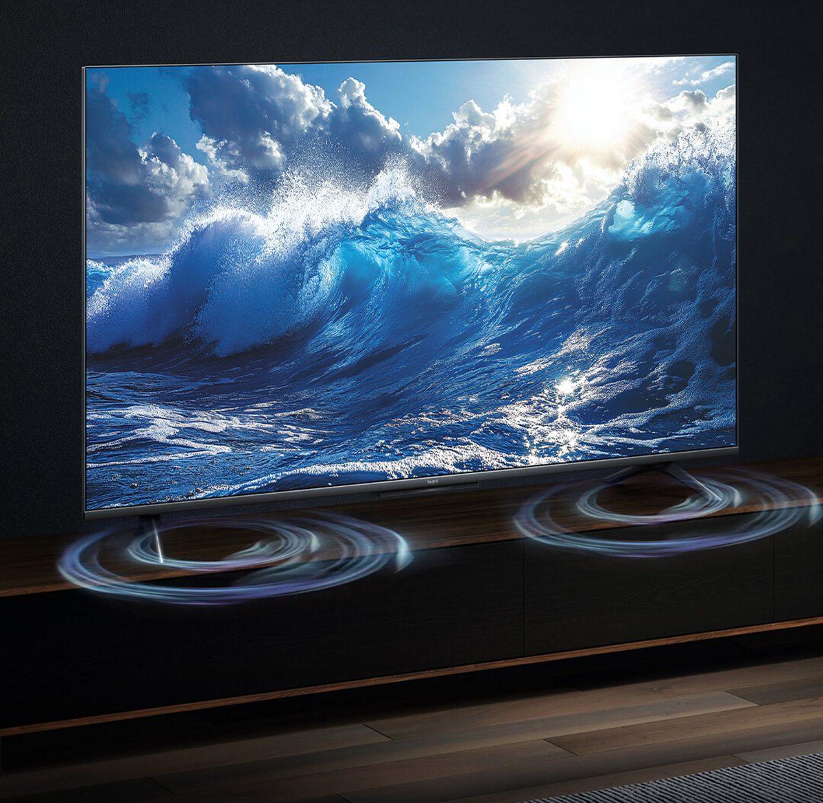 Tivi sở hữu thiết kế viền mỏng, chất liệu kim loại cao cấp, mang lại vẻ ngoài sang trọng và hiện đại. Tỷ lệ hiển thị lên đến 98% cho cảm giác hình ảnh tràn viền, mở rộng tầm nhìn.