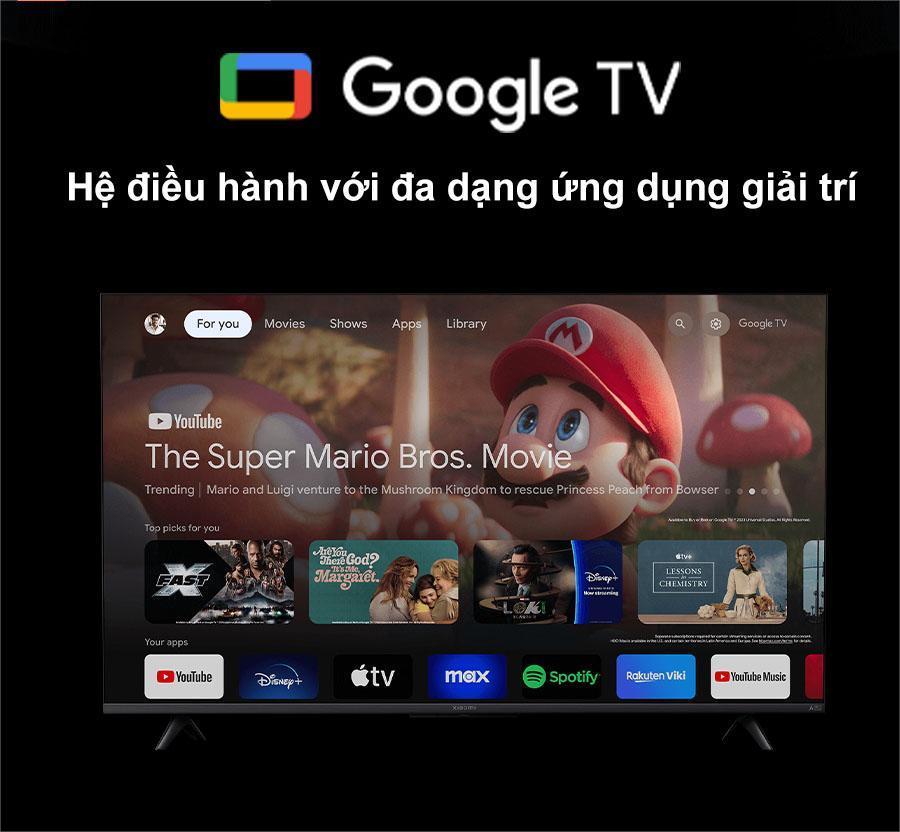 Với nền tảng Google TV bản quốc tế được tích hợp sẵn, Tivi Redmi Max 85 - Bản quốc tế 2025 cho phép bạn truy cập dễ dàng vào hàng nghìn ứng dụng giải trí phổ biến và phong phú như YouTube, Netflix, Disney+, Spotify cùng rất nhiều dịch vụ trực tuyến khác. Nhờ đó, bạn có thể thỏa sức khám phá và tận hưởng đa dạng nội dung từ phim ảnh, chương trình truyền hình, đến âm nhạc và podcast ngay trên màn hình lớn của mình.