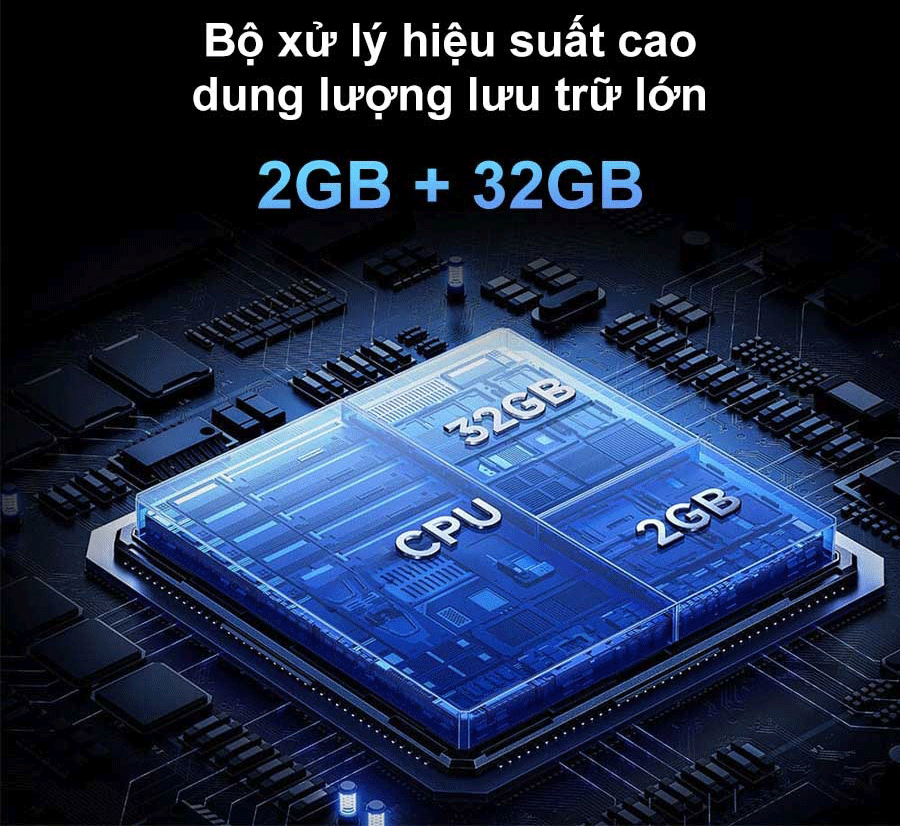 Bộ xử lý mạnh mẽ, RAM 2GB – ROM 32GB, vận hành mượt mà, lưu trữ thoải mái.