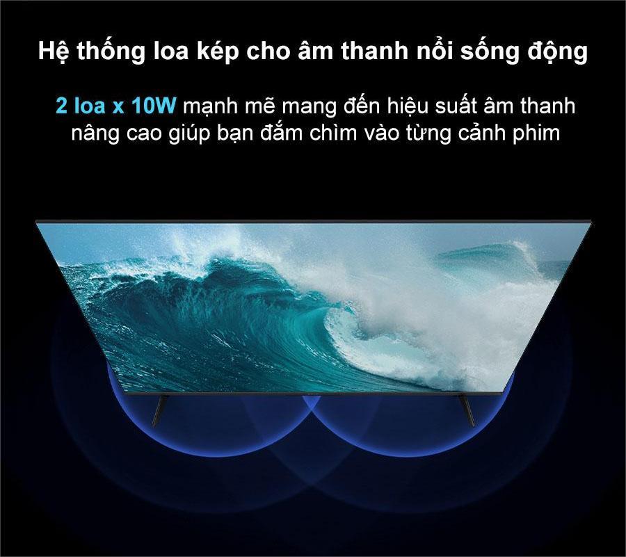 Chiếc Tivi Xiaomi A Pro 55 QLED - Bản quốc tế 2025 được trang bị hệ thống âm thanh gồm hai loa với công suất 10W mỗi loa, mang đến âm thanh mạnh mẽ, rõ nét. Kết hợp cùng công nghệ Dolby Audio™ và DTS:X, tivi tái tạo hiệu ứng âm thanh vòm 3D sống động, giúp bạn cảm nhận được từng chi tiết âm thanh một cách chân thực và sinh động.