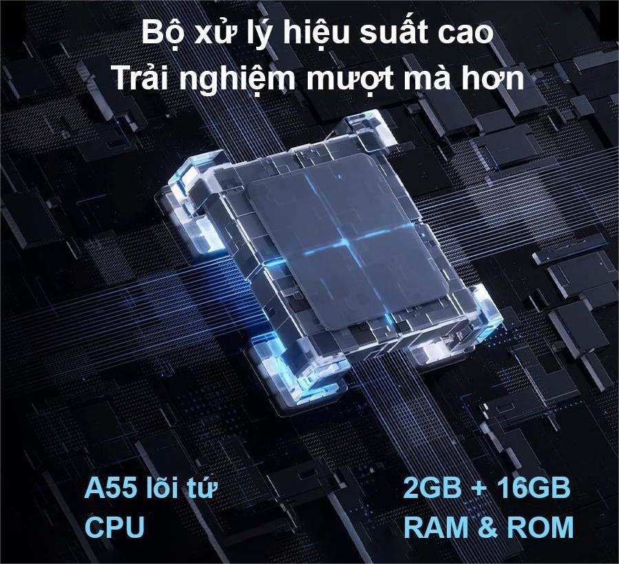Tivi Xiaomi A Pro 65 QLED được trang bị CPU lõi tứ A55, GPU Mali-G52 MP2, đi kèm 2GB RAM và 16GB bộ nhớ trong.