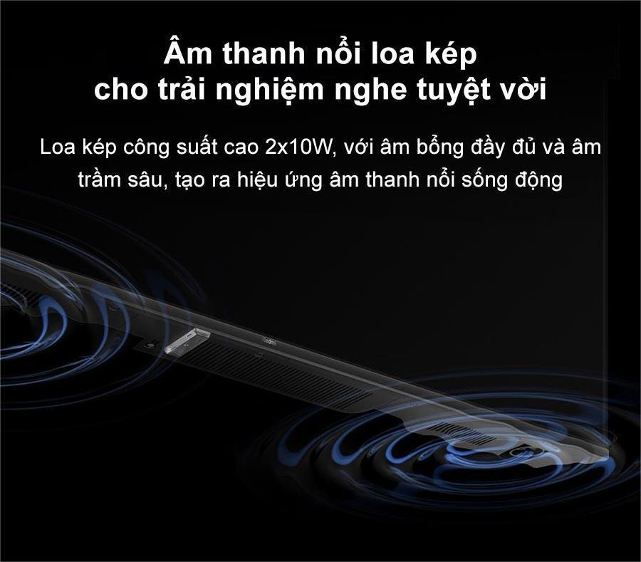Tivi Xiaomi A55 - Bản quốc tế 2025 không chỉ nổi bật với hình ảnh sắc nét mà còn gây ấn tượng mạnh mẽ nhờ hệ thống âm thanh chất lượng cao. Sản phẩm được trang bị hệ thống loa kép công suất tổng lên đến 20W, mang lại âm thanh mạnh mẽ, rõ ràng và lan tỏa đều khắp không gian phòng.