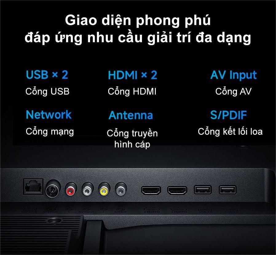 Ngoài ra, Tivi Xiaomi A55 - Bản quốc tế 2025 còn được trang bị đầy đủ các cổng kết nối hiện đại như: