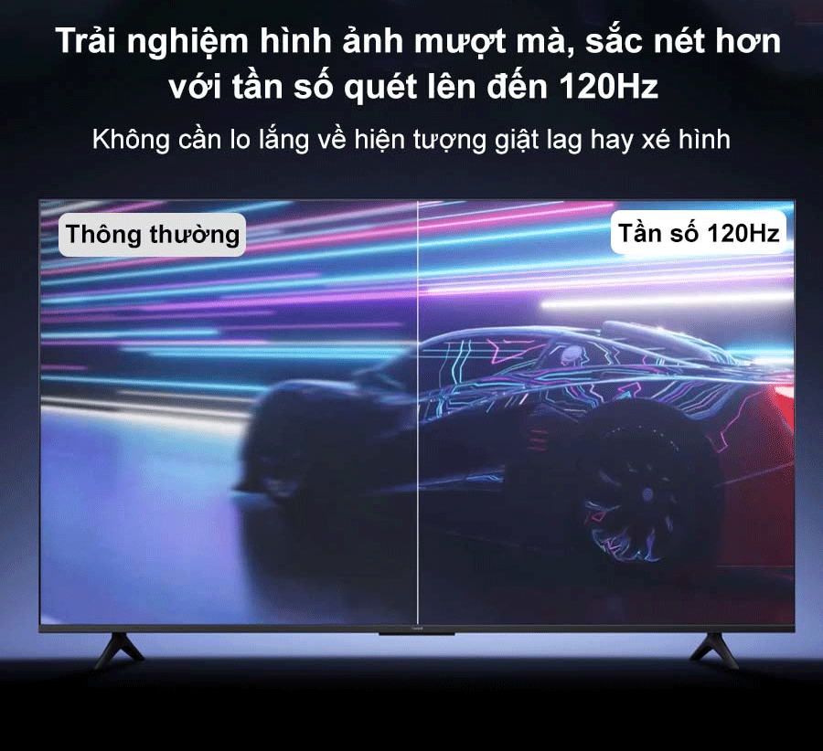 Tivi Xiaomi A75 hỗ trợ tần số quét lên đến 120Hz, giúp hiển thị hình ảnh sắc nét, mượt mà hơn. Đặc biệt, khi kết nối qua HDMI, tần số quét có thể tăng từ 60Hz lên 120Hz, mang đến trải nghiệm xem tối ưu. Với công nghệ này, bạn có thể tận hưởng những bộ phim hành động gay cấn hay các trận đấu thể thao sôi động mà không lo giật lag hay xé hình, giúp từng khoảnh khắc trở nên sống động và chân thực.