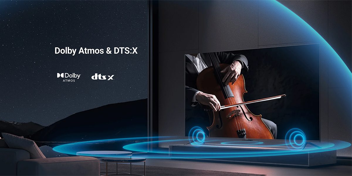 Công nghệ Dolby Atmos và DTS:X tạo ra âm thanh ba chiều với chiều trên cao, mang lại hiệu ứng âm thanh sống động và phong phú.