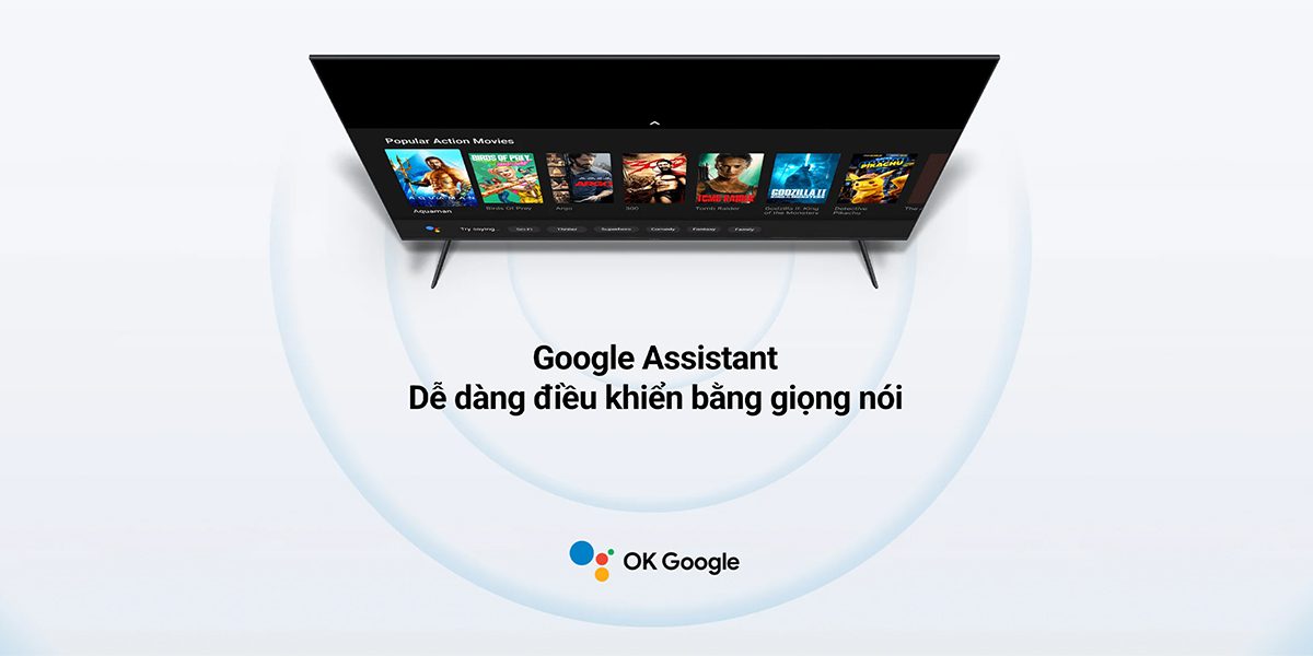 Dễ dàng điều khiển tivi bằng giọng nói với Google Assistant, từ tìm kiếm phim, hỏi thông tin, đến kiểm tra thời tiết.