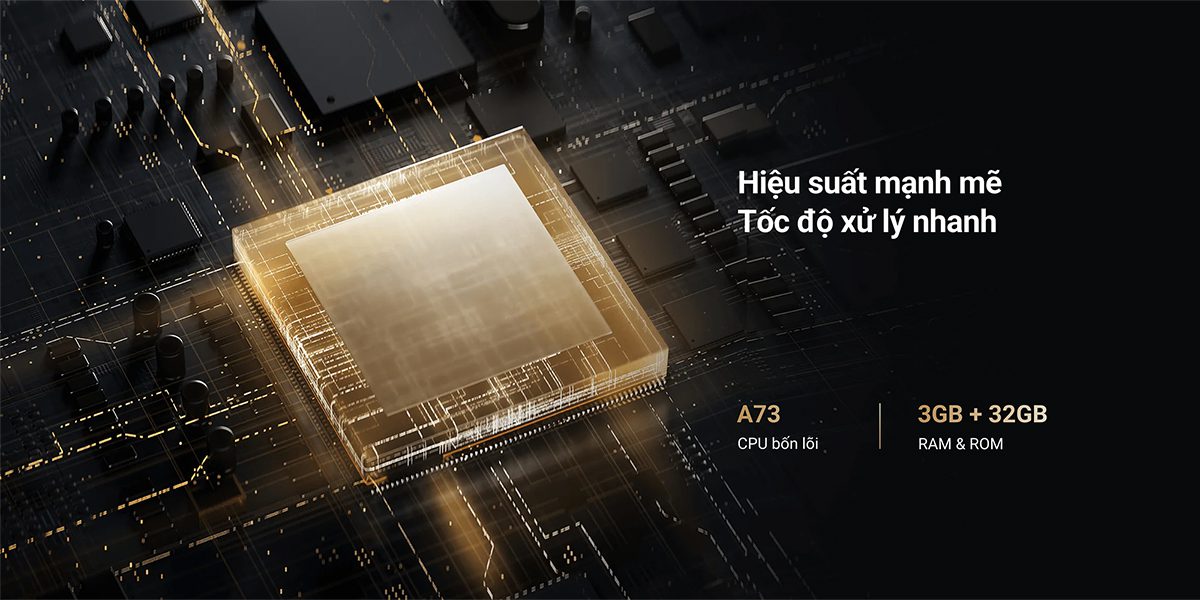 Tivi sở hữu CPU A73 bốn lõi, RAM 3GB và ROM 32GB, có thể xử lý đồng thời nhiều tác vụ và hình ảnh tốc độ cao một cách dễ dàng.