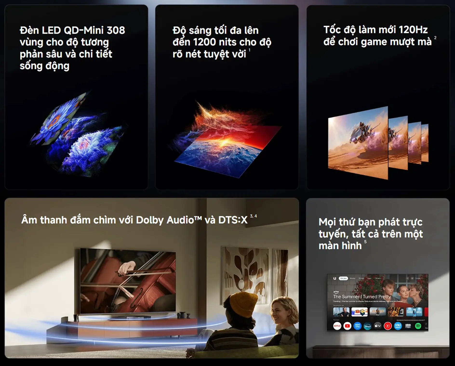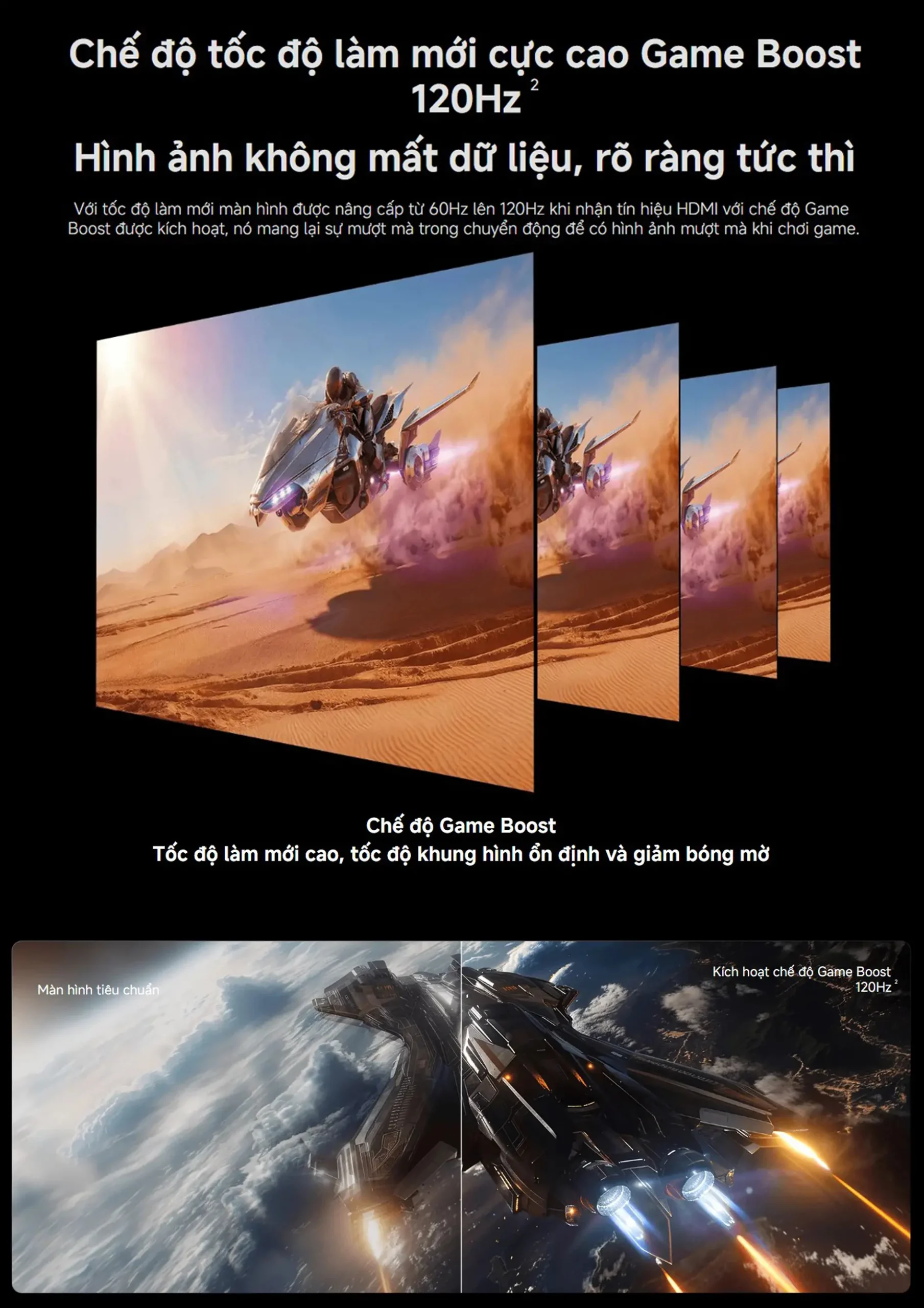 Tần số quét 120Hz, hỗ trợ HDR10+, chuyển động mượt mà.