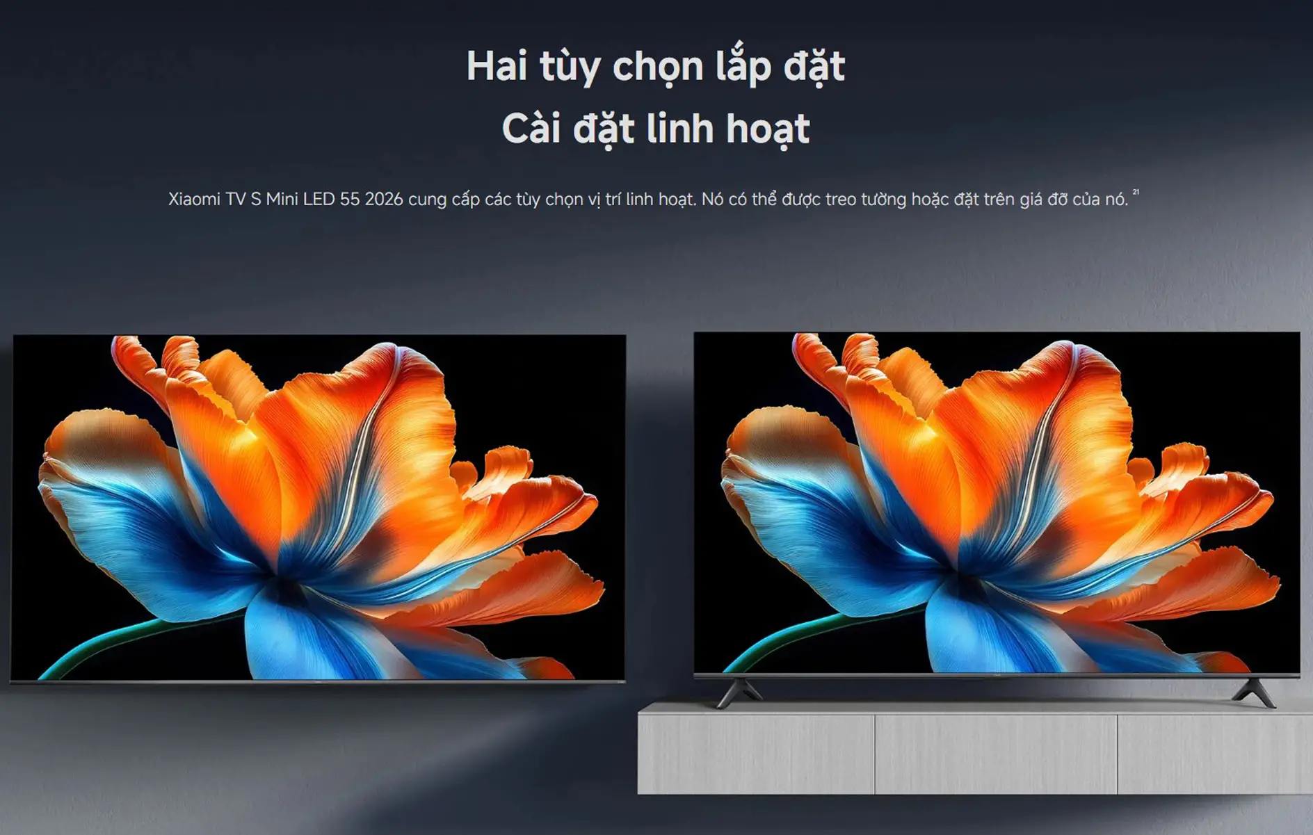 Màn hình Mini LED 55 inch, độ phân giải 4K (3840 x 2160).