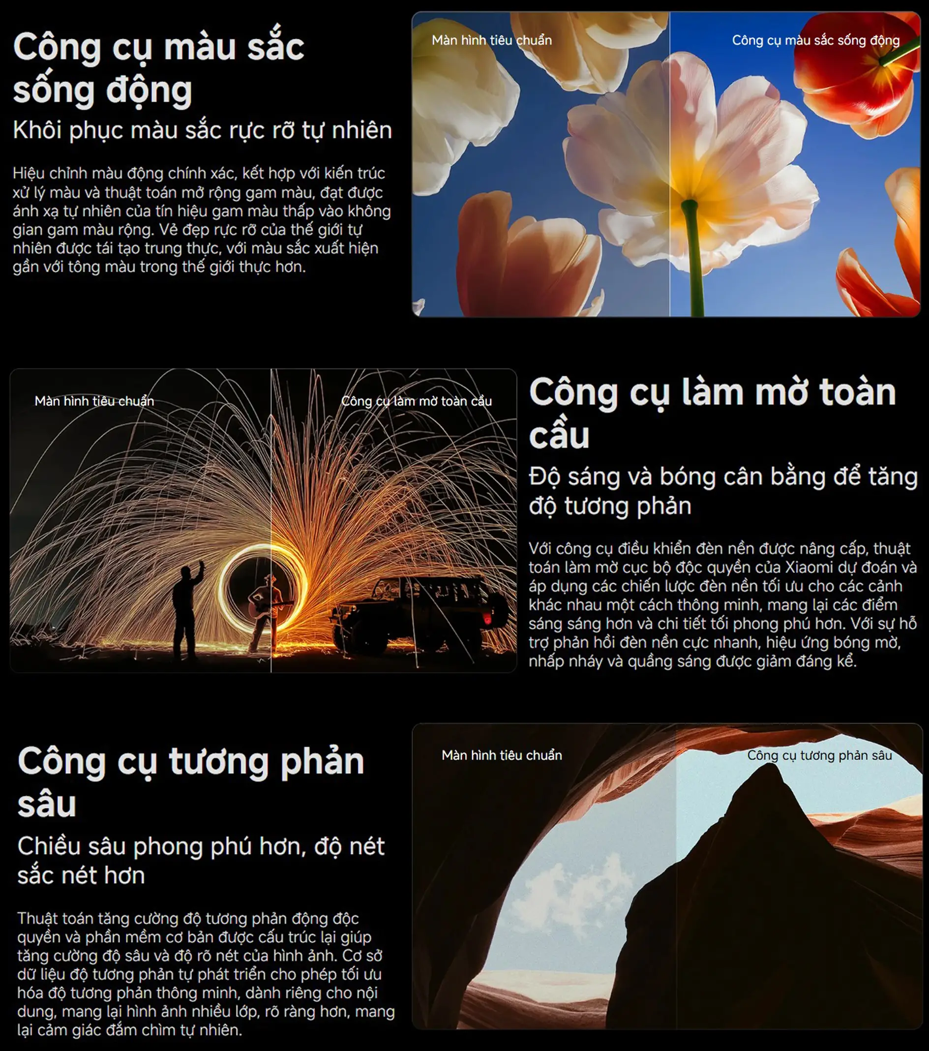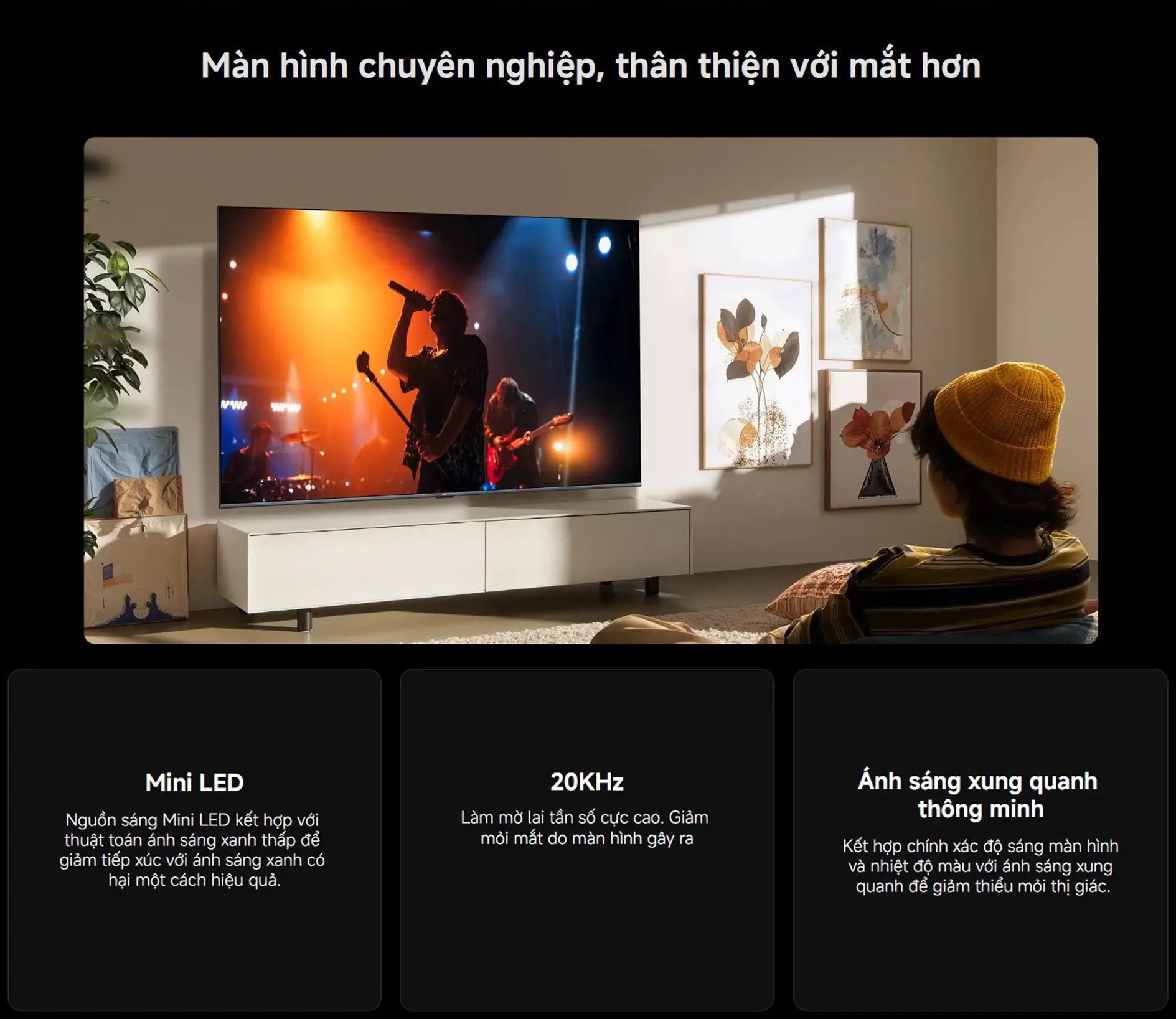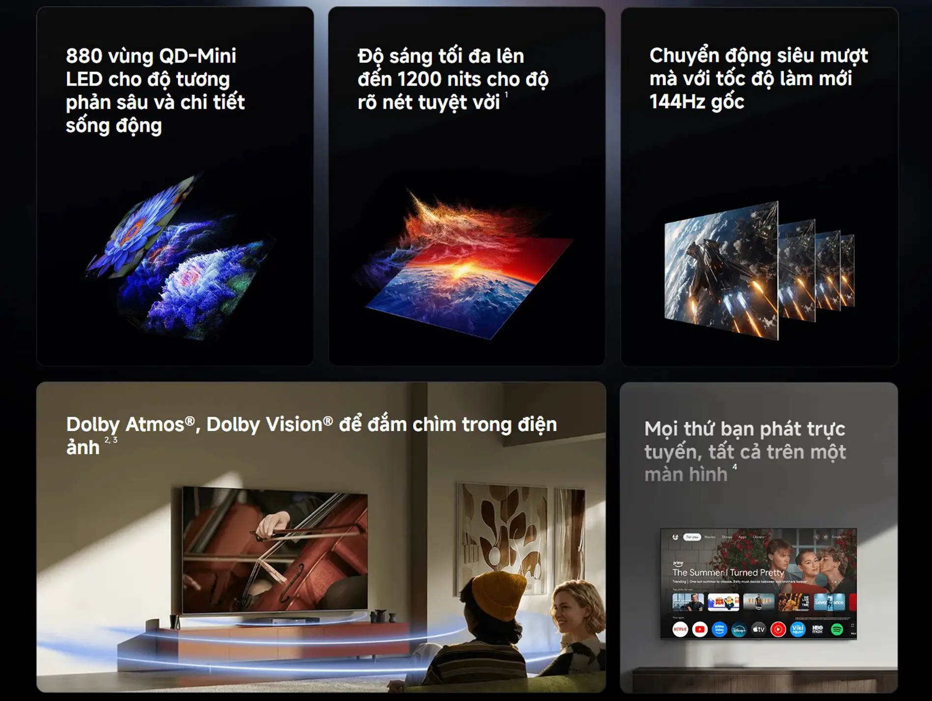 880 đèn nền QD Mini LED + Local Dimming, độ sáng tối đa 1200 nits.