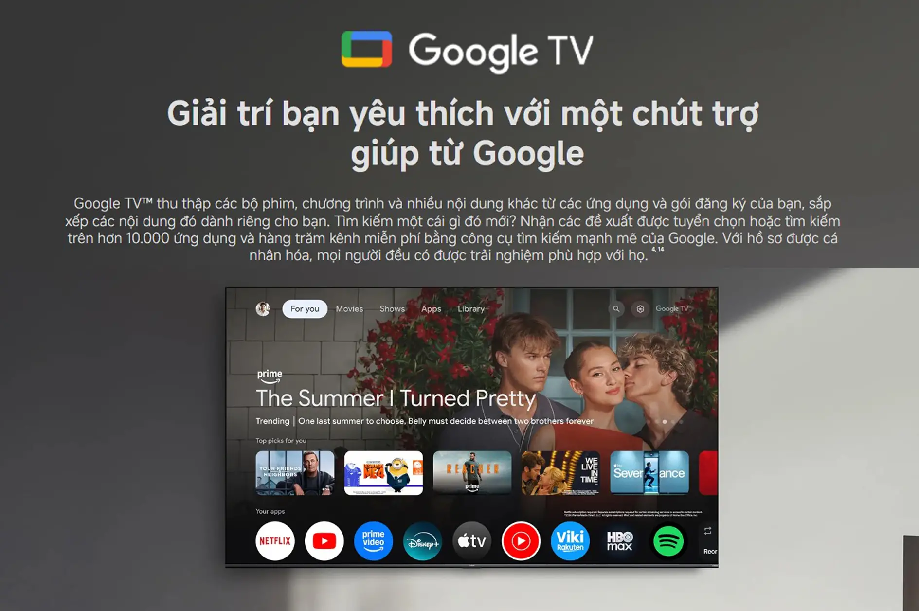 Google TV thông minh, hỗ trợ Google Assistant, Google Cast, Apple AirPlay.