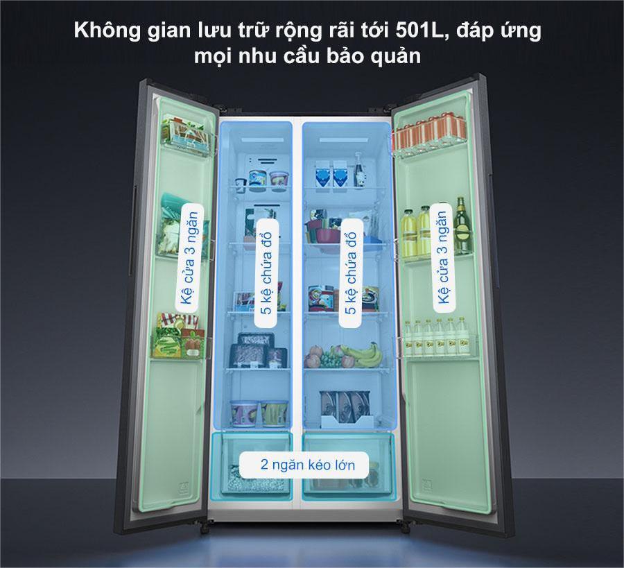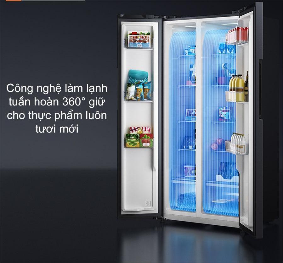 Sản phẩm sử dụng hệ thống làm lạnh gió lạnh đa chiều kết hợp bộ lọc kháng khuẩn kép, giúp hơi lạnh phân bố đều khắp tủ. Thực phẩm luôn giữ được độ tươi ngon, không bị mất nước hay nhiễm khuẩn.