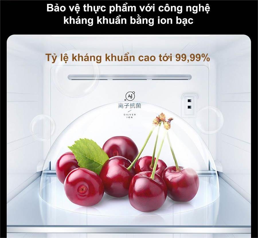Trang bị mô-đun ion bạc Ag+, tủ lạnh có khả năng khử mùi và diệt khuẩn hiệu quả. Công nghệ này giúp ngăn chặn sự phát triển của vi khuẩn và phân hủy các phân tử mùi khó chịu trong tủ, mang lại không khí tươi mới, sạch sẽ.