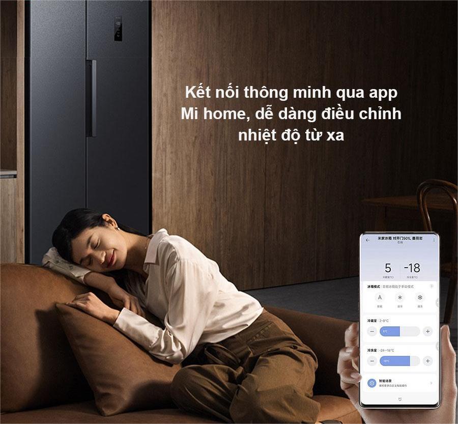 Bạn có thể dễ dàng điều khiển Tủ lạnh Xiaomi 2 cánh 501L thông qua ứng dụng Mi Home. Chỉ vài thao tác trên điện thoại, bạn có thể theo dõi nhiệt độ, bật/tắt chế độ tiết kiệm điện, hay nhận cảnh báo khi cửa tủ bị mở quá lâu.