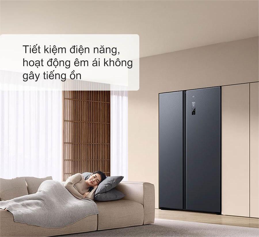 Tủ lạnh Xiaomi 2 cánh 610L được đánh giá cao nhờ hiệu suất năng lượng tối ưu, với mức tiêu thụ điện chỉ khoảng 0,99 kWh/ngày. Đây là con số ấn tượng đối với một chiếc tủ lạnh dung tích lớn, cho thấy khả năng vận hành tiết kiệm điện vượt trội.