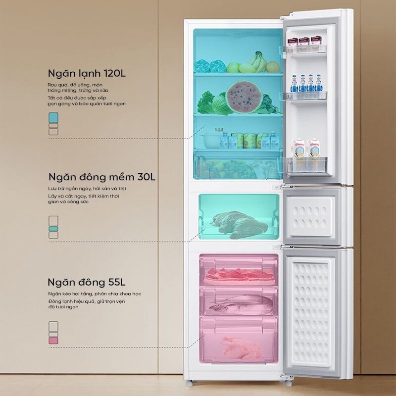 Đây là một tính năng thiết thực, góp phần nâng cao trải nghiệm sử dụng của Tủ lạnh Xiaomi 3 cánh 205L - Model 2025, giúp bảo quản thực phẩm thuận tiện và nhanh chóng hơn.