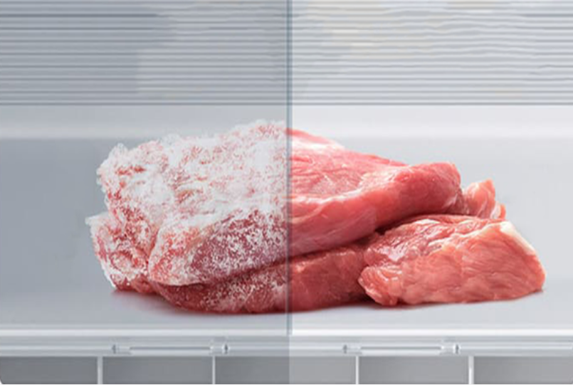 Tủ lạnh Xiaomi 3 cánh 216L ứng dụng công nghệ làm lạnh bằng gió tiên tiến, hoàn toàn loại bỏ hiện tượng sương giá và đóng tuyết thường gặp ở nhiều dòng tủ lạnh thông thường. Thiết kế luồng khí thác nước thông minh giúp hơi lạnh không thổi trực tiếp vào thực phẩm, nhờ đó bề mặt thực phẩm được bảo vệ, tránh bị khô và mất đi độ tươi ngon tự nhiên.