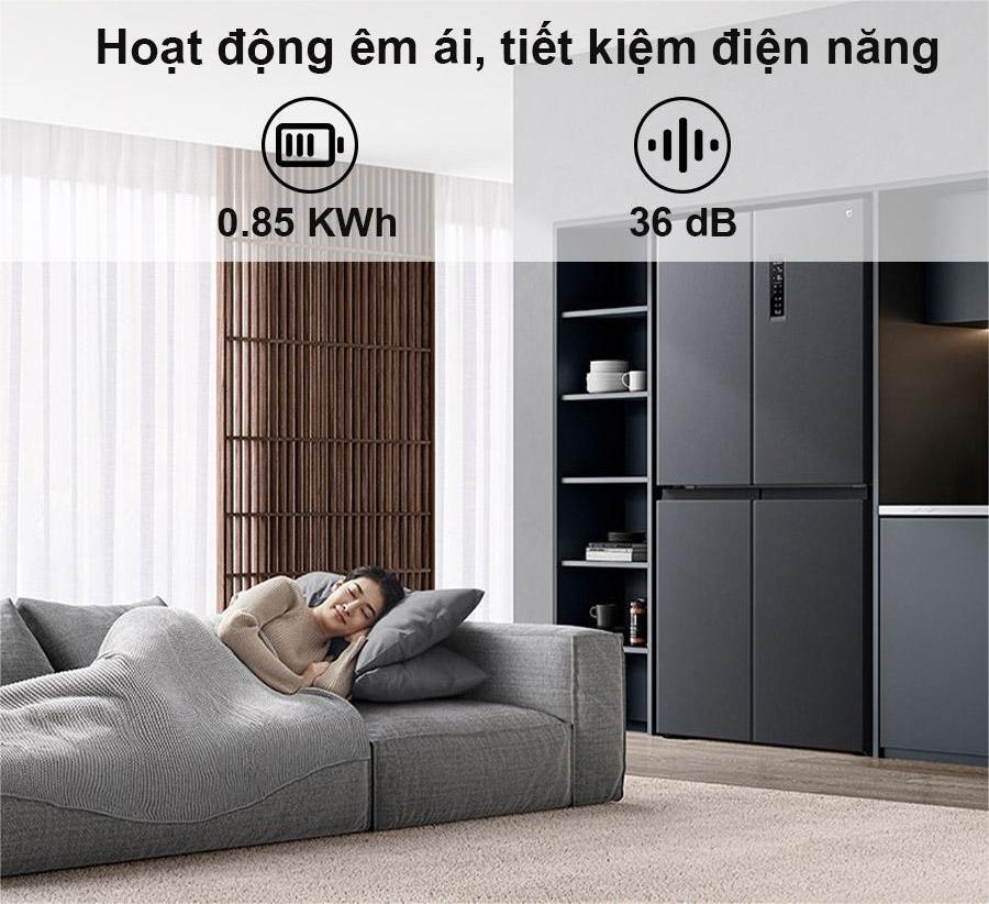 Tủ lạnh Xiaomi 4 cánh 430L sở hữu công suất tiêu thụ điện rất tiết kiệm, chỉ khoảng 0,85 kWh/ngày, giúp giảm đáng kể chi phí điện năng cho gia đình bạn. Đồng thời, tủ hoạt động với độ ồn cực thấp, chỉ 36dB, đảm bảo không gây ảnh hưởng đến sinh hoạt hàng ngày, rất lý tưởng cho những không gian sống cần sự yên tĩnh như phòng ngủ hay phòng làm việc.