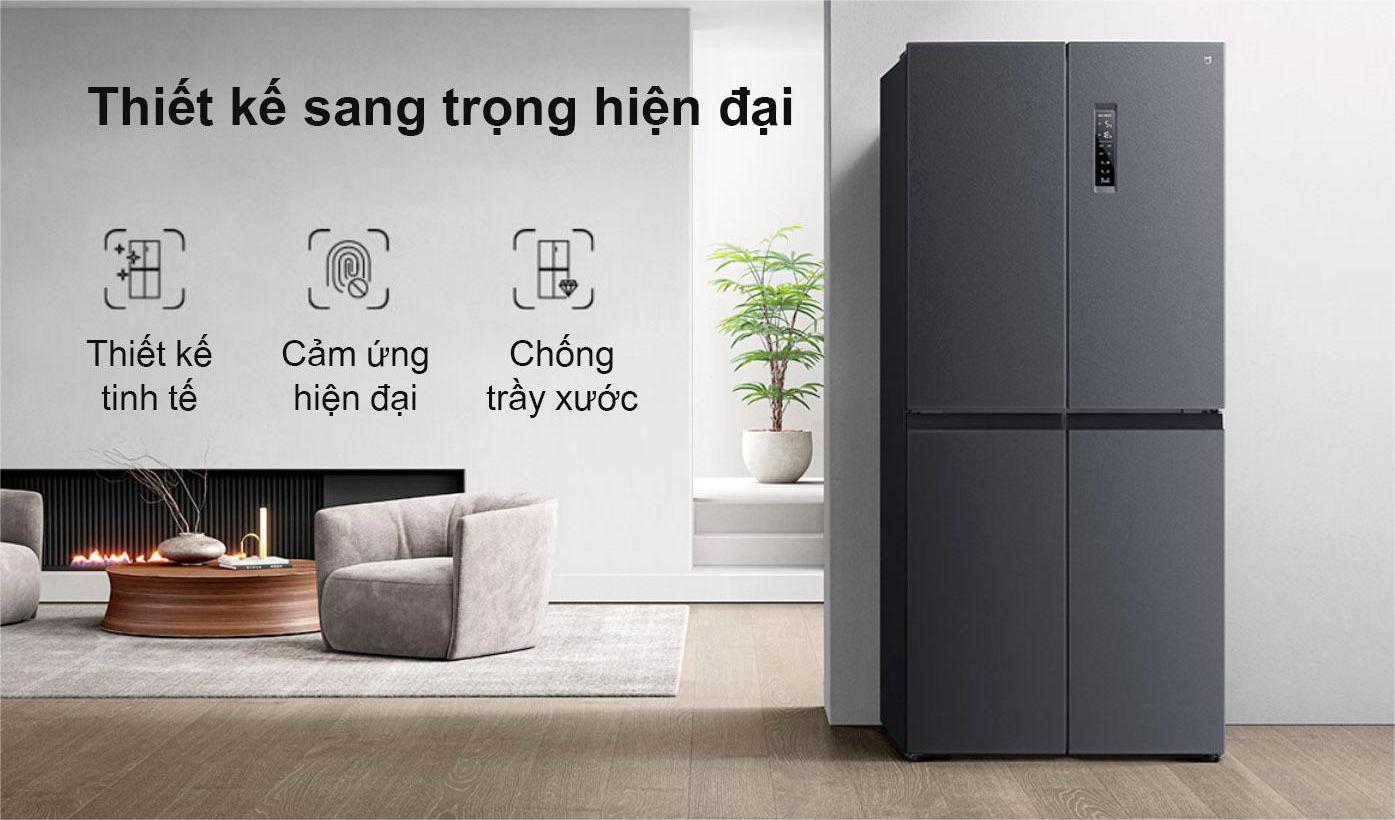 Tủ lạnh Xiaomi 4 cánh 430L – mẫu tủ lạnh bán chạy nhất trên thị trường, sở hữu thiết kế cao cấp và hiện đại với lớp vỏ đá phiến kim loại Moyu sang trọng, mang lại độ bền vượt trội theo thời gian.