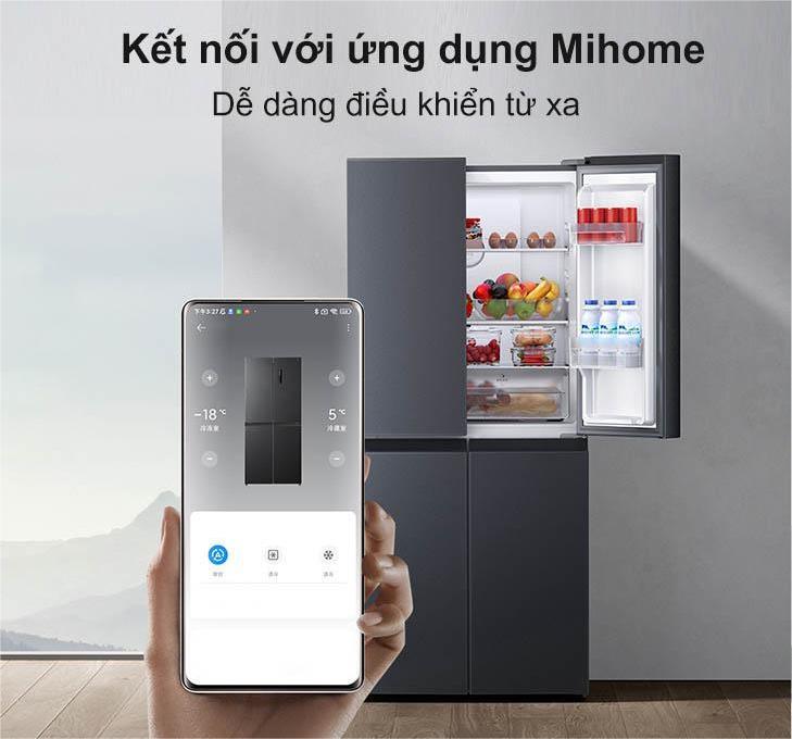 Người dùng có thể kết nối tủ lạnh Xiaomi 4 cánh 430L với ứng dụng trên điện thoại, dễ dàng điều chỉnh nhiệt độ, theo dõi trạng thái tủ từ xa.