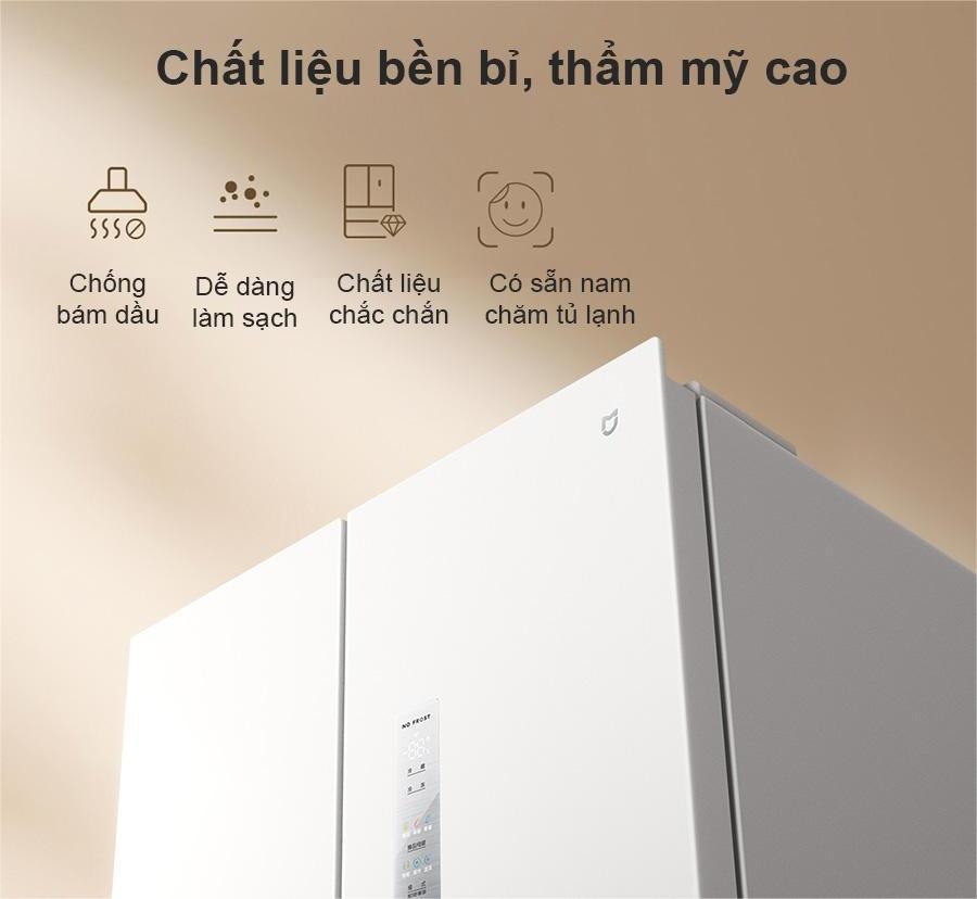 Đặc biệt, bề mặt tủ được phủ lớp chống bám dầu thông minh, giúp hạn chế tối đa việc lưu lại dấu vân tay hay vết bẩn trong quá trình sử dụng hằng ngày. Nhờ đó, người dùng có thể dễ dàng vệ sinh chỉ với một lần lau nhẹ, duy trì vẻ ngoài sáng bóng và bền đẹp theo thời gian. Với sự kết hợp giữa thiết kế tinh tế và tính thực tiễn cao, Tủ lạnh Xiaomi 4 cánh 439L không chỉ là thiết bị bảo quản thực phẩm mà còn là món đồ nội thất mang tính thẩm mỹ cao cho gian bếp hiện đại.