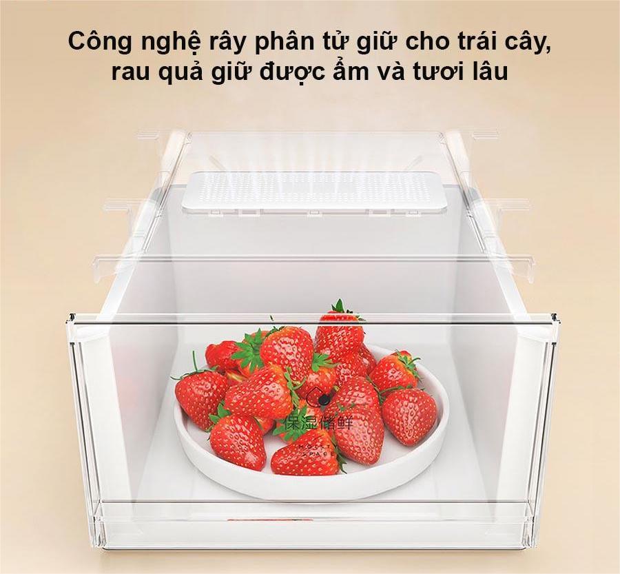Tủ lạnh Xiaomi 4 cánh 439L được tích hợp công nghệ rây phân tử nước tiên tiến kết hợp cùng màng giữ ẩm sinh thái, giúp tạo ra lớp phun sương độ ẩm tự nhiên bên trong ngăn rau củ. Nhờ đó, độ ẩm được duy trì ổn định, ngăn ngừa tình trạng khô héo, mất nước – một trong những nguyên nhân chính khiến rau củ nhanh hỏng và giảm giá trị dinh dưỡng.