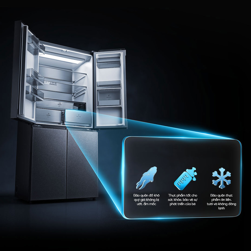 Tủ lạnh Xiaomi 4 cánh 603L - Mẫu cao cấp được thiết kế với bố cục lưu trữ khoa học, tối ưu hóa công năng cho từng loại thực phẩm, đáp ứng đầy đủ nhu cầu bảo quản của gia đình hiện đại: