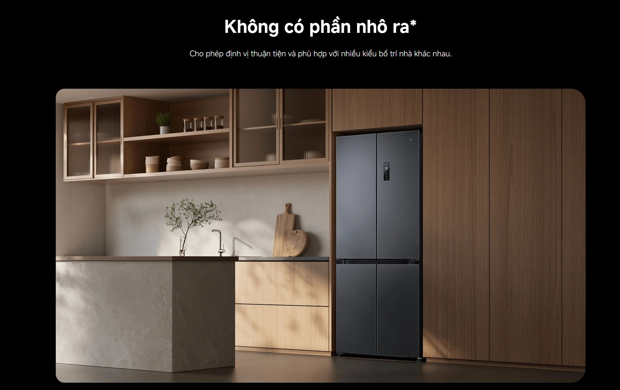 Với thiết kế không có phần nhô ra, việc lắp đặt tủ lạnh trở nên dễ dàng hơn bao giờ hết. Bạn chỉ cần chừa khoảng trống tối thiểu 5cm ở hai bên, phía trên và phía sau để đảm bảo luồng khí tản nhiệt tốt.