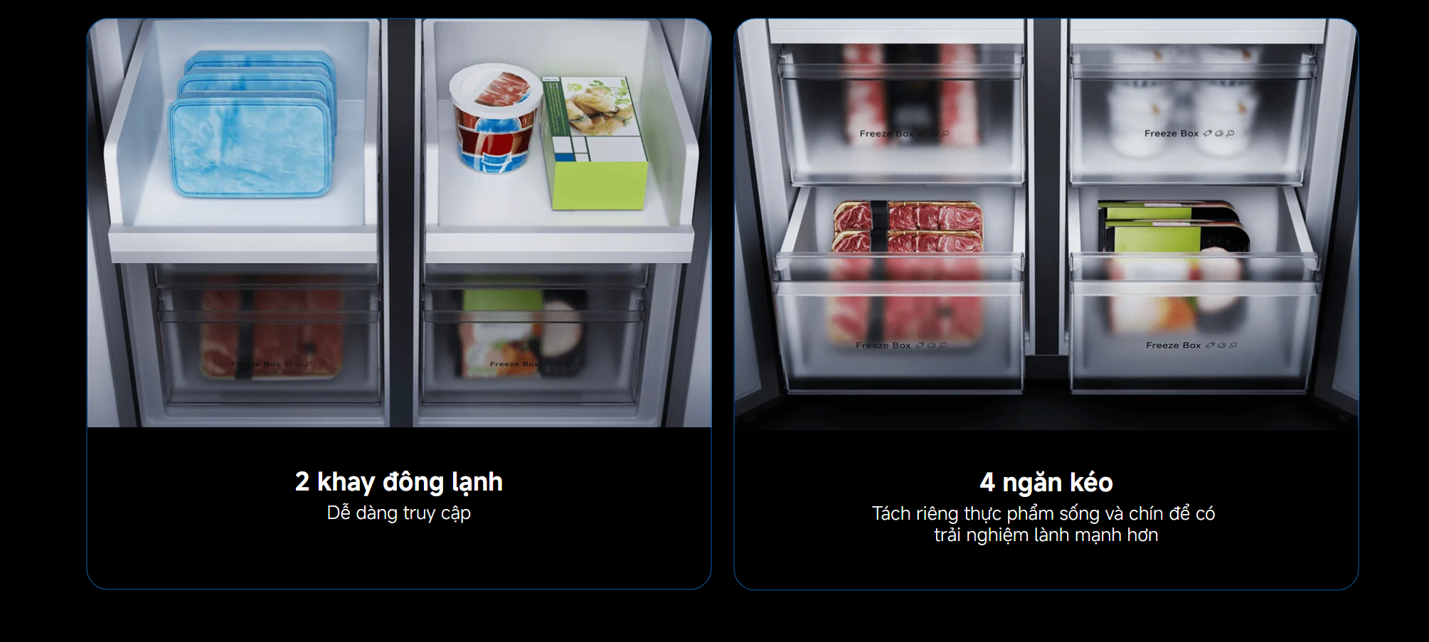 Đây là giải pháp lý tưởng để gia đình bạn luôn sẵn sàng thực phẩm tươi sống mỗi ngày, đồng thời tối ưu hóa việc sử dụng không gian bên trong tủ lạnh.