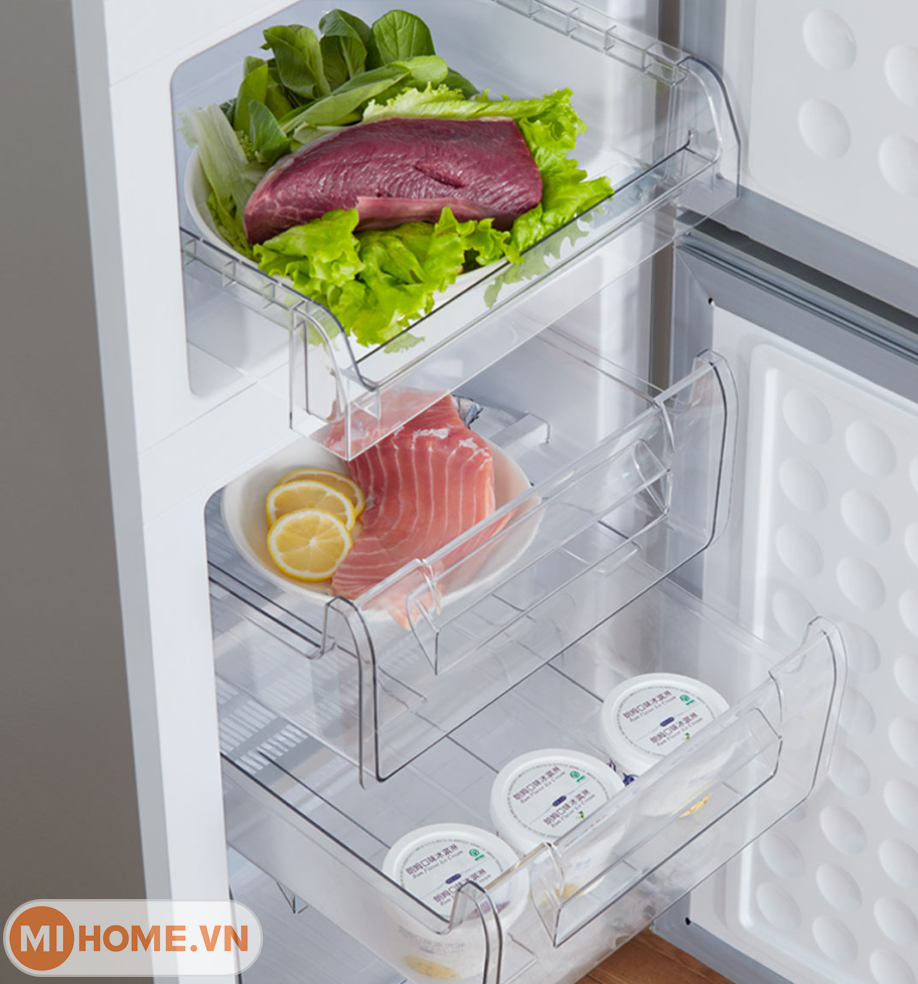 Với dung tích tổng 215L, tủ lạnh ba cửa Xiaomi Mijia 215L đủ rộng rãi để phục vụ nhu cầu lưu trữ của gia đình từ 3 đến 5 thành viên. Ngăn đá, ngăn đông mềm và ngăn lạnh được thiết kế độc lập giúp tối ưu hóa quá trình bảo quản thực phẩm.